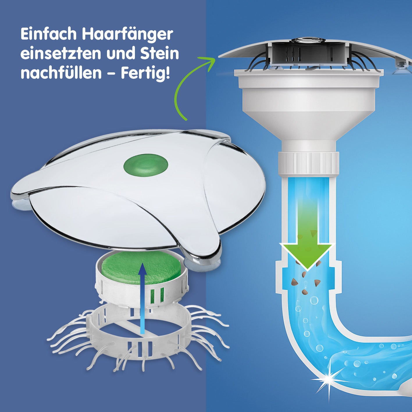 Die Steine geben bei Kontakt mit Wasser einen Wirkstoff frei, der wie ein Gleitmittel agiert. Dieser Wirkstoff sorgt dafür, dass Haare, Seifenreste und andere potenzielle Verstopfungsursachen durch den Siphon gespült werden, ohne sich abzulagern. Dadurch wird das Risiko von Verstopfungen deutlich reduziert.